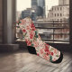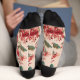 Un motif floral aquarelle d'hibiscus rouge vif sur un fond rose doux recouvre ces chaussettes magnifiques.
