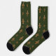 Un motif de pains d'épices à l'allure de dessins animés avec tous les ornements classiques, y compris les boutons de goutte et les détails de givrage, décore un arrière - plan vert de forêt pour créer une paire de chaussettes amusante et ludique pour la saison de Noël.