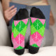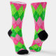 Chaussette Jacquard rose et vert avec piqûres blanches