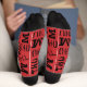 Personnalisés par vous, ces chaussettes Jeudi Jour de la semaine en rouge et noir avec une initiale monogramme personnalisée sont le cadeau amusant ultime. Ces chaussettes monogrammes d'un genre vous offrent le choix de lettres monogrammes dans une police audacieuse éparpillée parmi un motif de collage de THU (courte pour JEUDI) dans un mélange de jolies polices fines manuscrites et amusantes, en noir sur un arrière - plan rouge profond. Chaussettes personnalisées Jeudi en rouge et noir avec un monogramme de votre choix fait un cadeau mignon pour presque toutes les occasions. Jetez un coup d'oeil à mes autres jours disponibles pour un ensemble personnalisé de chaussettes Jours de la semaine pour adultes afin que vous puissiez créer un ensemble complet en noir et rouge ou mélanger et assortir les choix de couleurs. Amusant pour les hommes et les femmes, monogramme personnalisé Les chaussettes Jeudi en rouge et noir sont un choix mignon pour la Fête des pères, la Fête des Mères, Anniversaires, Fêtes ou comme cadeau de bâillon.