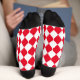 Ajoutez la finition parfaite à votre tenue de jour derby avec ces chaussettes motifs en diamant de style soie de jockey rouge et blanc. Convient pour la piste ou une fête d'observation de course de cheval, les motifs colorés en soie jockey font partie de l'élégance amusante de la course de cheval. Il s'agit d'un motif diamant classique également connu sous le nom d'empreinte arlequin. Autres vêtements et accessoires de coordination disponibles dans la boutique The Pink Railbird. Mélangez et associez les couleurs et les motifs pour un look distinctif/ Montré en rouge et blanc, vous pouvez customiser ces chaussettes avec n'importe quelle couleur en éditant dans l'outil de conception.