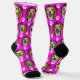 Ces chaussettes personnalisées mignonnes avec empreintes de pattes blancs sur un arrière - plan rose vif et votre propre chien, chat, ou autre photo de bébé en fourrure dans un motif décalé, et sont les chaussettes parfaites pour mettre vos animaux de compagnie! C'est un grand cadeau pour l'amoureux de l'animal de compagnie ou de la chaussette en tant que rembourrage de Noël!