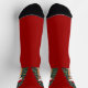 Ce beau chien de Pembroke Welsh Corgi a la tête inclinée à l'intérieur d'un mignon casquette du Père Noël. L'adorable chiot est assis devant un joli sapin de Noël orné de décorations colorées. Chaussettes de vacances rouges mignonnes.