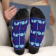 Chaussettes Crew avec de jolis petits oiseaux bleus et des coeurs sur fond bleu. Les oiseaux bleus symbolisent la joie et la sagesse !