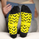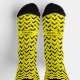 Loud geometric design featuring a black chevron pattern on bright yellow socks. Color matching space for your name or initials on the calves.