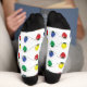 Chaînes de lumières de Noël classiques, stylisées après de grandes ampoules en verre, rouge, vert, bleu et jaune brillant contre un arrière - plan blanc créant une jolie paire de chaussettes pour la saison des fêtes.