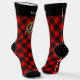 Insigne de crête Gregor ou MacGregor entouré d'une sangle et boucle sur Rob Roy arrière - plan tartan. Couleur de bande supérieure personnalisée. Texte personnalisé sur chaque chaussette.
