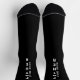 Habille les hommes de ta fête de mariage en coordonnant des chaussettes. "Père de la mariée" est écrit sur le devant de ces chaussettes noires en caractères blancs gras. Personnalisez avec vos prénoms et votre date mariage en simple typographie blanche sur le pied inférieur.