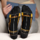 Ces chaussettes présentent un design plaid moderne et audacieux, avec une élégante palette dorée et noire. Les rayures plaid sont superposées de motifs linéaires pointus, ce qui donne au design une atmosphère contemporaine et élégante. L'ajout d'un monogramme — placé en évidence sur les parties supérieure et inférieure des chaussettes — ajoute une touche personnalisée et sophistiquée. La base noire améliore la richesse des teintes dorées, créant un contraste saisissant parfait pour l'usure élégante, formelle ou personnalisée. Ces chaussettes combinent harmonieusement les motifs classiques avec un avant-goût moderne, les rendant polyvalents à la fois pour la mode et pour le don.