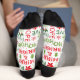 Ce motif à thème de Noël est le design de vacances ultime et est parfait pour les chaussettes de vacances. Le design présente une typographie colorée de vacances heureuses dans un motif sans couture avec un arrière - plan blanc personnalisé.