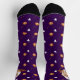 Ces chaussettes effrayantes d'Halloween sont décorées de citrouilles drôles, de fantômes, de chauves-souris et d'yeux effrayants sur un fond violet foncé imitant la nuit d'Halloween.