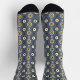 Illustration géométrique de tournesol accompagnée d'un motif continu de fleurs.