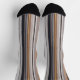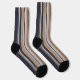 A Pair Of Multi Colored Vertical Lined Unisex Crew Sock In Browns, Black And Gray Colors