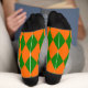 Geometric Orange and Green Color Harlequin Diamonds Checkered Shapes Pattern Design