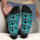 Ajoutez une touche aquatique à votre tenue avec ces chaussettes illustrées qui présentent des illustrations d'orques ou d'orques en noir et blanc dressées contre un arrière - plan turquoise des vagues bleues de l'océan.