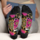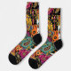 Un design bohème et dynamique avec des mandalas complexes, des motifs cachemire et des éléments floraux ornementaux. Ce motif mêle des couleurs audacieuses comme l'orange, le turquoise, le magenta et le noir, créant ainsi des Chaussettes exotiques et décoratives. Idéal pour les amateurs d'esthétique boho, ethnique et folklorique.