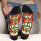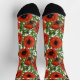 Chaussette Pavot rouge et brindilles, feuilles verts sur blan