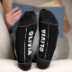 Minimal style personalized black socks. A custom name is printed in white on the sole part of each sock. Elegant classic black sock with your name on them are practical and stylish.