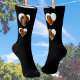 Stay a step ahead with these adorable dog photo socks, featuring four of your own favorite pictures of your pet. Each photo is displayed within a heart shaped 'frame' on a black background, making a toe-tally cute collage design. This pair of socks makes an ideal novelty gift for dog moms, other pet owners and fellow animal lovers.