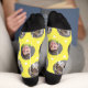 Ces chaussettes jaunes mignonnes pour animaux de compagnie ou pour enfants disposent de deux photos — de votre animal de compagnie ou animaux de compagnie, enfant, enfants ou photos de famille, dans une rangée motif avec triangles blancs, et sont des chaussettes personnalisées parfaites pour mettre en vedette votre enfant, mari, femme, chien, chat ou toute personne que vous aimez! C'est le cadeau parfait pour les amateurs de chaussettes et un grand rembourrage de Noël!