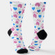 Chaussette Pink Cat Paws Blue Hearts Green Meow Pattern