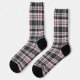 Plaque de tartan texturée grise avec fines bandes rouges et bleues.