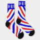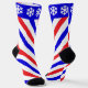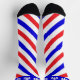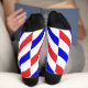 Chaussettes de Noël amusantes avec les rayures rouges, blanches et bleues du poteau de barbier, et des flocons de neige. Cadeau de Noël parfait pour les barbiers.
