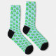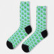 Cette superbe paire de chaussettes d'équipage à motifs présente une image graphique d'un pod vert de pois contenant 2 pois verts et un gros pois bleu. Le grand pois bleu a un petit visage mignon avec les yeux et une bouche. De l'autre côté du pod en rose foncé, il est écrit "Baby Boy Ready to Pop". Le design est idéal pour un faire-part de grossesse ou un baby shower. Il y a un groupe de petits pois bleus dans l'arrière - plan.
