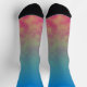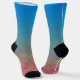 Ces chaussettes évoquent la lueur d'une playlist de fin de soirée qui dérive à travers des lumières néon et des basses résonnantes. Des bleus électriques frais se fondent en teintes sarcelles, des verts aurore doux et des touches de couleur chaude près de la base, créant un dégradé qui ressemble à de la musique voyageant dans l'air nocturne. Le flux de couleurs capture la sensation de synthétiseurs en couches et de rythmes fluides qui se construisent en une atmosphère vibrante.