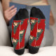 Ces chaussettes de Noël mignonnes carlins présentent un adorable chien devant un motif de sapin de Noël en rouge festif. Grands cadeaux pour un amoureux des carlins.