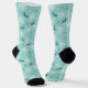 Ces jolies chaussettes de vacances ont un motif turquoise et blanc de rennes bondissants, de flocons de neige et de confettis. Votre monogramme en blanc est sur une bannière de cercle turquoise assortie à l'extérieur de chaque chaussette.