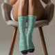 Restez bizarre Chaussettes Motifs Capybara Verte - Ce motif capybara original et minimaliste est une célébration ludique de l'individualité et du charme. Contre un arrière - plan vert menthe, l'art en ligne blanche continue présente des capybaras adorablement abstraits dans des poses détendues et fantaisistes. Le toucher dessiné à la main apporte une touche artistique et moderne, à la fois mignonne et cool sans effort. Soyons honnêtes... les capybara's sont si chaudes en ce moment. Que vous soyez dans un humour décalé ou que vous aimiez simplement un imprimé audacieux d'inspiration animale, ce design fait une déclaration de style amusante et inattendue. C’est le parfait mélange de bizarre et de merveilleux, exactement comme la vie devrait être.
