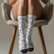 Restez bizarre Chaussettes Motifs Capybara Blanches - Ce motif capybara original et minimaliste est une célébration ludique de l'individualité et du charme. Contre un arrière - plan blanc, la ligne blanche continue présente des capybaras adorablement abstraits dans des poses détendues et fantaisistes. Le toucher dessiné à la main apporte une touche artistique et moderne, à la fois mignonne et cool sans effort. Soyons honnêtes... les capybara's sont si chaudes en ce moment. Que vous soyez dans un humour décalé ou que vous aimiez simplement un imprimé audacieux d'inspiration animale, ce design fait une déclaration de style amusante et inattendue. C’est le parfait mélange de bizarre et de merveilleux, exactement comme la vie devrait être.