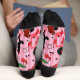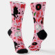 Rockabilly filles vont adorer ces chaussettes roses d'inspiration les années 50, à la patte de canicules noirs, cerises, disques vinyles et plus encore