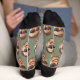 Chaussettes personnalisées amusantes avec une photo et un arrière - plan vert sage. Téléchargez un découpage du visage avec un arrière - plan transparent et il sera automatiquement répliqué sur les chaussettes, des deux côtés. Pour réaliser le découpage, vous pouvez télécharger n'importe quelle application mobile ou informatique, ou utiliser le programme nommé Canva ou Photoshop.