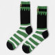 Get dressed up this Christmas with these cool elf socks! Featuring a fun design of a black Santa Claus helper elf outfit and green striped socks, these socks are perfect for holiday parade costumes and festive cosplay.