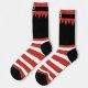 Get dressed up this Christmas with these cool elf socks! Featuring a fun design of a black Santa Claus helper elf outfit and red stripes, these socks are perfect for holiday parade costumes and festive cosplay.