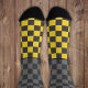 Lancez la série Secret Wild ! Ces chaussettes jouent le double rôle : en haut, elles sont toutes calmes et propres - parfait pour le monde ordonné et uniforme de la vie de bureau. Mais caché à l'intérieur de vos chaussures ? C’est là que brillent vos vraies couleurs. Lumineux, audacieux, indompté, et juste un peu rebelle. Quand la journée de travail se termine et que les chaussures se détachent, le vrai que vous sortez. Libérez votre côté sauvage - une chaussette à la fois. Ce premier design le garde cool, du moins à la surface. Sur le veau : des contrôles subtils en gris foncé. Mais en bas, sur le pied ? Le même motif prend vie dans un jaune brillant et ensoleillé. Un plateau tranquille, une semelle sauvage. C’est un symbole parfait de dualité : ce que le monde voit, et qui vous êtes vraiment.