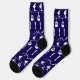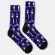 Stylish navy blue ski themed socks patterned with cute skiers, cable cars and mountains