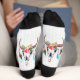 Crâne taureau moderne avec fleurs colorées, plumes et cornes sur un motif tribal beige