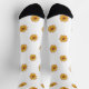 Aimez-vous les chaussettes mignonnes ? Ces chaussettes ont un motif de fleurs jaunes dessinées à la main, faites en jaune, marron, rouge et orange marqueurs.