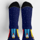 Trois sages en vêtements colorés tenant des cadeaux et des petits flocons de neige sur des Chaussettes bleu marine. Joyeux Noël!