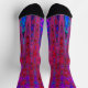 Ces Chaussettes Unisex couleur Cool tout en imprimé sont équipées d'une Trippy Rouge et Violet Abstrait Rétro Atomique Waves Design original avec Black, Orange, Aqua et Royal Blue Accents. Le résultat est un design coloré, super et abstrait que vous aimerez !