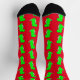 Dessin de dinosaure de style caricature mignon. Conception de version rouge. Chaussettes personnalisées. Idée cadeau pour les adultes et les enfants qui aiment les dinosaures.