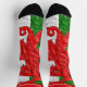 This pair of Welsh flag design socks are a soft fabric covering for the feet, typically worn inside shoes to provide comfort, warmth, and absorbency. You can customise this pair of socks with any text of your choice. Should you require any help with customising then contact us through the message link on this page. Flag of Wales design pair of socks.