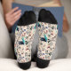 Ce style William Morris a été illustré par moi. Je voulais créer une scène de colibri avec des fleurs fantaisistes, des branches et des feuillages qui dansaient autour. De mignons petits libellules flottent autour de nous. Certaines fleurs sont des Coeurs saignants, des Chrysanthèmes et des fleurs sauvages stylisés. Une belle paire de chaussettes pour une journée de printemps ou d'été.