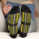 Slightly wobbly stripes in yellow on black. Uneven, as if hand-drawn. Probably suitable for the office or other serious business activities. At least as long as you keep your shoes on. Underneath, at the foot, there's still some space, where you can add your name or a short quote that brightens your day.