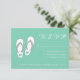 Chaussons de plage vert turquoise / Mint carte mariage RSVP. Fait partie d'un ensemble de thèmes. Donnez à vos invités un moyen de répondre s'ils viennent à votre élégant mariage de plage. Ce design va de pair avec les invitations à la réception de mariage. Qualité du texte et du papier personnalisable. Typographie de script chic.