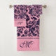 Elégant vintage damas à fleurs motif dans le bleu foncé et rose avec monogramme personnalisable.