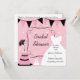 Jolie et mignonne Shoe customisée For Thought, l'invitation à la douche nuptiale comporte un gâteau mariage avec un dessus de chaussure unique, une robe mariage, et des bannières sur un arrière - plan à pois rose, des endroits où vous pouvez ajouter le nom de l'invité d'honneur, et des détails de la douche nuptiale incluant la date, l'heure, l'emplacement, les informations RSVP, et plus encore.